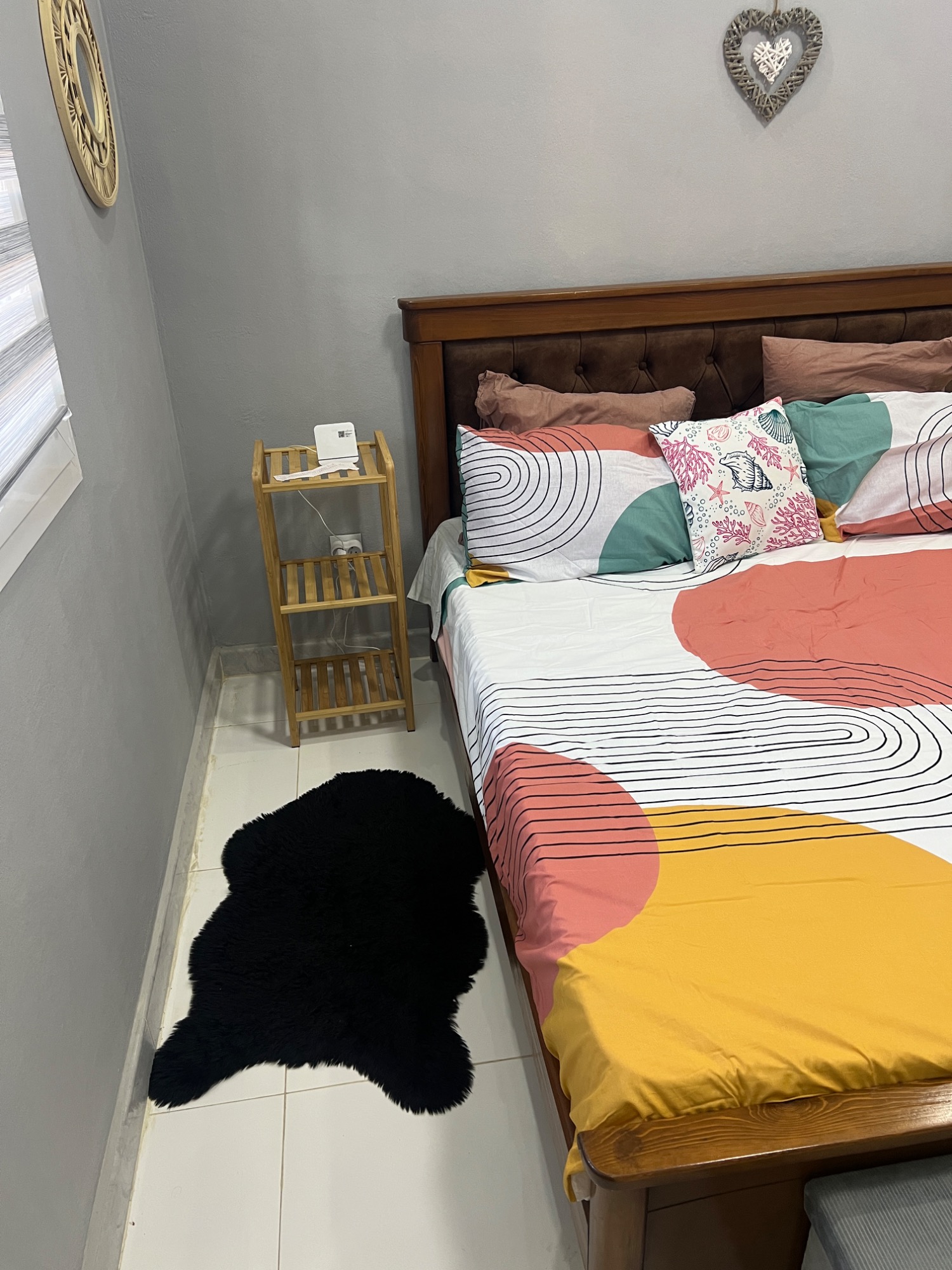 Pour votre confort, la chambre est également dotée d'un climatiseur, vous permettant de régler la température selon vos préférences. Un dressing bien aménagé vous attend avec des draps, des couvertures et des serviettes soigneusement disposés. De plus, vous trouverez un fer à repasser et un sèche-cheveux pour vous aider à optimaliser votre séjour. Un Coran et un tapis de prière sont également à votre disposition, respectant nos traditions et nos croyances.