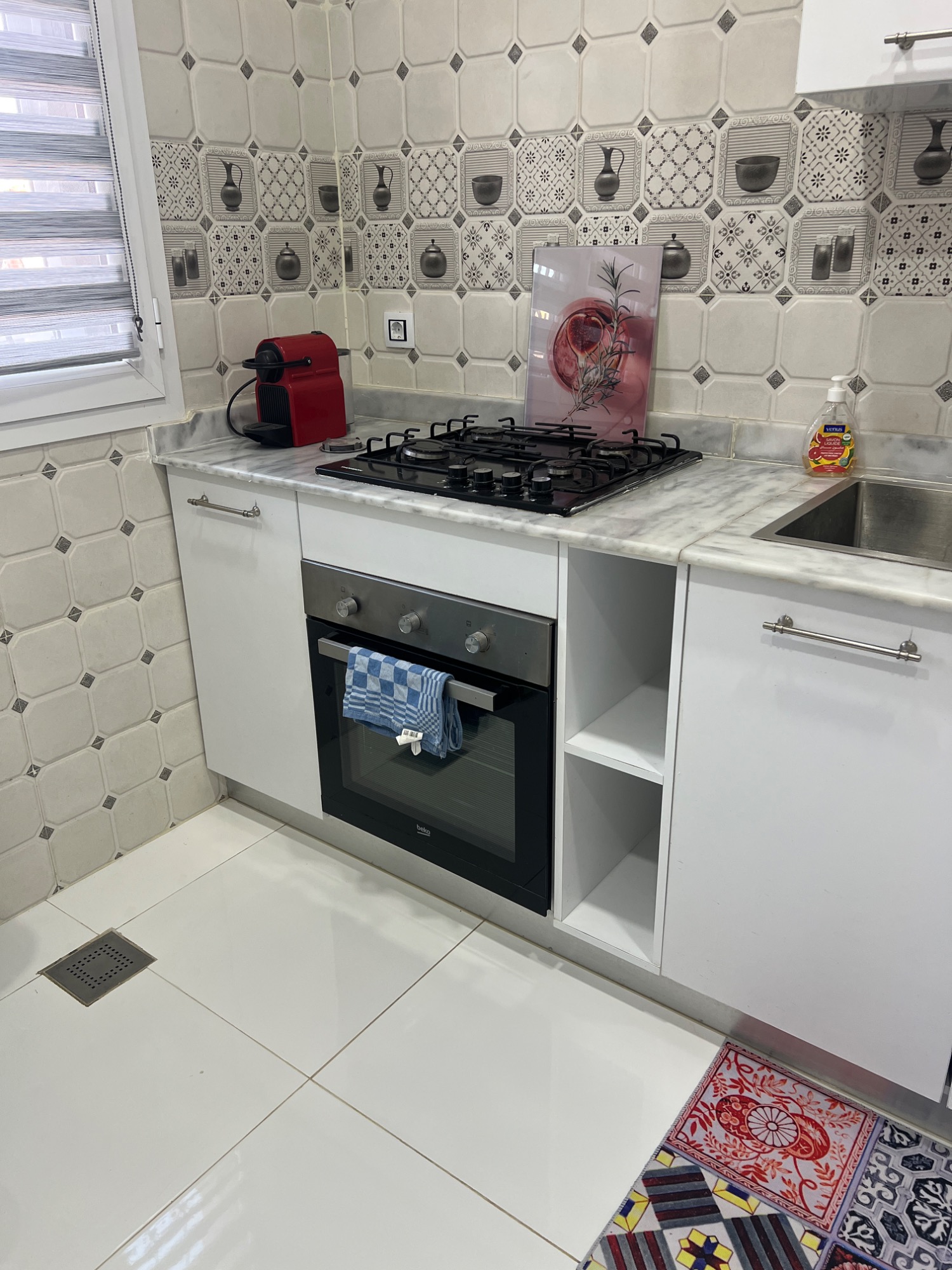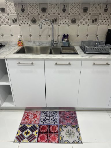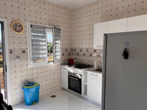 La cuisine équipée de toutes commodités est un véritable atout pour tout logement. Avec un réfrigérateur moderne, une table spacieuse et quatre chaises confortables, elle offre un espace idéal pour préparer et déguster vos repas. Tous les ustensiles nécessaires pour cuisiner sont à votre disposition, permettant ainsi de s'adonner à la gastronomie sans contrainte. La présence d'une fenêtre et d'une porte assure une bonne ventilation, évitant ainsi que les odeurs ne s'installent dans le logement. De plus, d'autres portes donnant sur la cour vous offrent la possibilité de profiter de l'extérieur tout en restant dans le confort de votre cuisine.